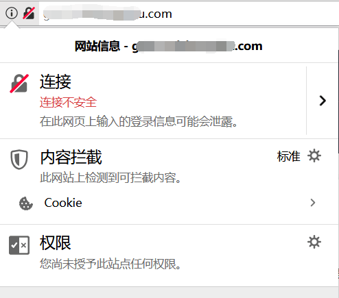 在火狐浏览器中,这种“不安全”的标志虽然不像谷歌那样显眼,但对于http开头的网站也会被标记为“不安全”。会提示此连接不安全,数据传输未经过加密。而对于https开头的则会在地址栏有一个绿色的锁头标记。