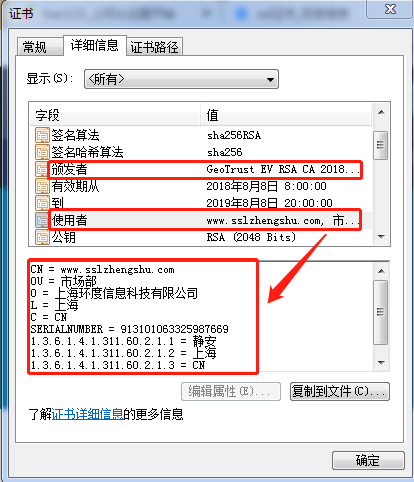 不管是哪种证书,都会在浏览器和服务器之间提供加密传输方式。但是并不是所有类型的证书都提供身份验证。这三种证书都需要验证对网站的域名管理权限,但DVSSL证书有一个缺点,它只验证域名管理权限,只起到加密传输的作用,并不验证网站的真实身份。而对于OVSSL和EVSSL证书,我们可以在证书详情中看到网站的更多信息包括企业的地址等,而在EVSSL证书中信息会更详细,验证企业身份也更为严格。用户还可以在证书详情中查看给网站颁发证书的证书颁发机构(CA)的名称。