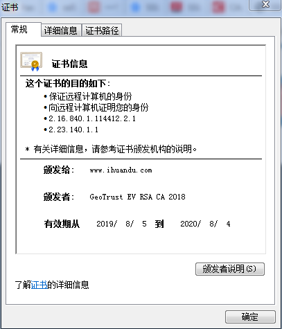点击地址栏前面的挂锁图标,查看证书详情中即可查看证书有效期。