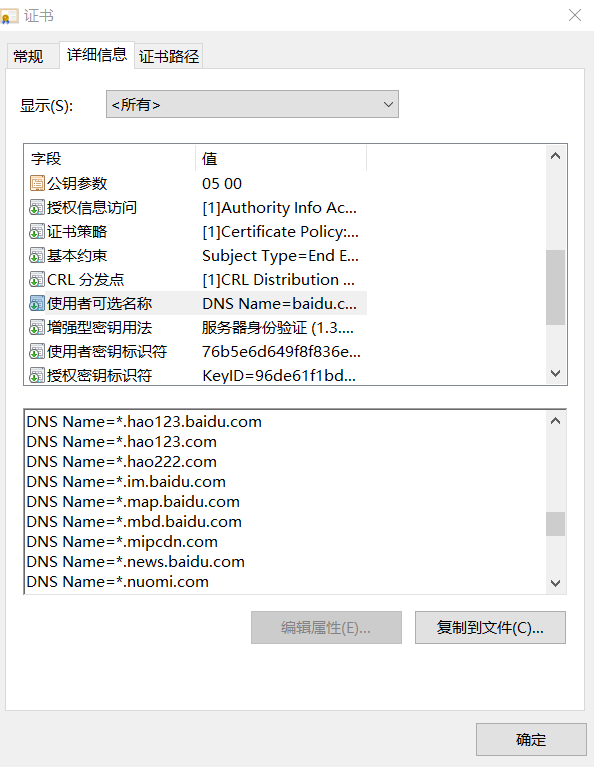 以下为百度的证书详情,一张证书中包含了多个通配符SSL证书。