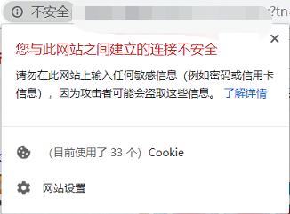 在谷歌浏览器中,访问http网站会在地址栏显示“不安全”三个字,点击“不安全”前面的图标会有提示不安全的内容,其内容如下: